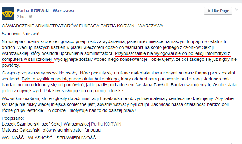 Nie wierzylem i sprawdzilem na fb. GG NO RE. Co ten czlowiek wyprawia... Przeciez nowa partia oznacza cofniecie sie kilka krokow do tylu. :D