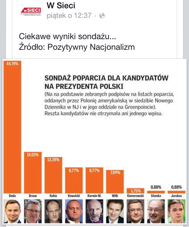 No tylko, że próbka tego sondażu musi być bardzo (naciskiem na bardzo) mała, ponieważ bardzo mało prawdopodobne jest by przy dużej próbce aż dwie pary kandydatów miały taki sam wynik procentowy zaokrąglony do drugiego miejsca po przecinku.